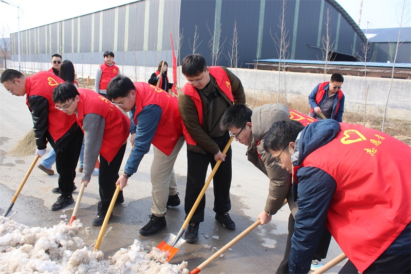 下午,10余名志愿者身著統(tǒng)一服裝,手持鐵鍬、掃帚等工具,對工業(yè)區(qū)園區(qū)內(nèi)的垃圾和積雪進行集中清掃,以實際行動保障道路整潔、暢通,為過往司乘人員及周邊群眾安全出行保駕護航。
